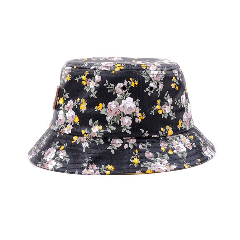 leather flotal bucket hats