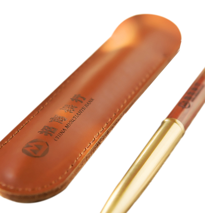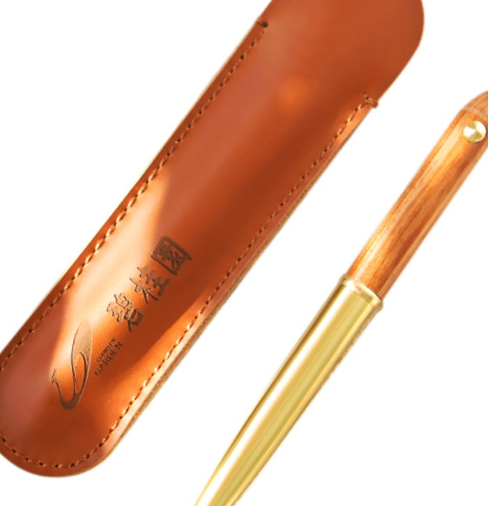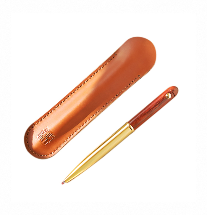 Copper Wood Metal Black Pen with Leather Case