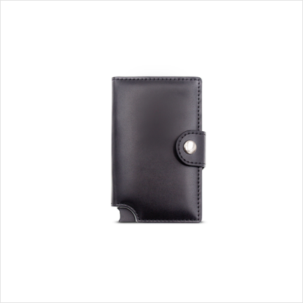 - 真皮 -RFID鋁製卡槽 -卡滑塊觸發器 -最多可容納9張卡 -現金束帶