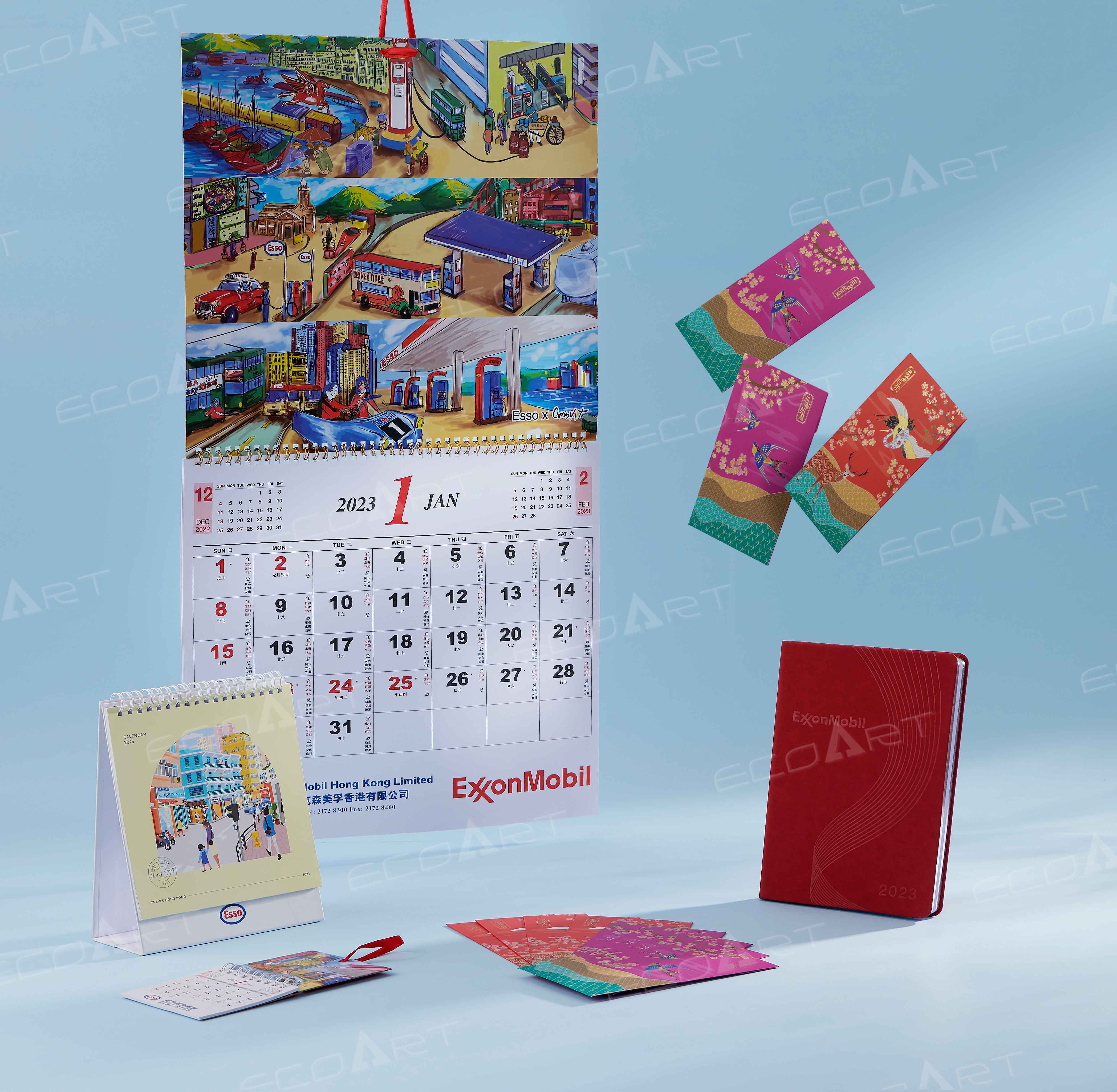 ExxonMobil Hong Kong Limited Gift Set Packaging:Red Packet, Calendar, NoteBook