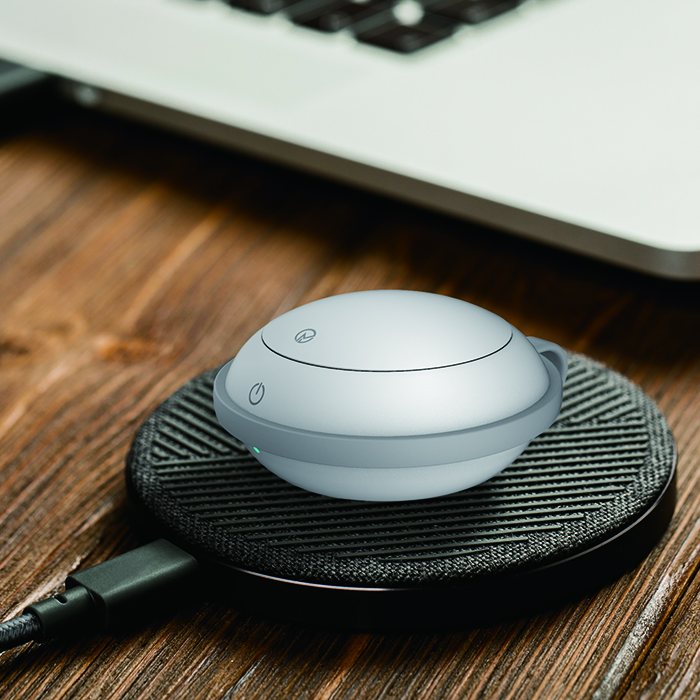 技術規格參數: 電 壓:DC 5V 充電電流:120mA 電池容量:170mAH 電 流:<20mA 無線充電:2.5W (兼容Qi) 功 率:<1 W 負離子釋放克量:>三百萬負離子/平方厘米 主機尺寸:Ø45x24mm