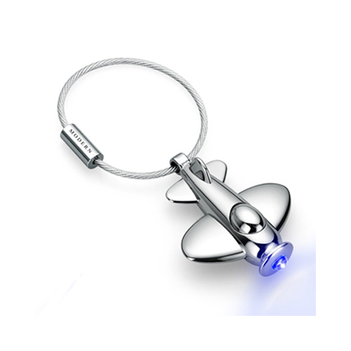 合金打造機身 藍色高亮LED燈 機身鉻合金打造 鏡面拋光 為您的重要鑰匙尋找一個優雅的好伴侶 飛機頂部即是LED燈的開關摁下去即可發亮