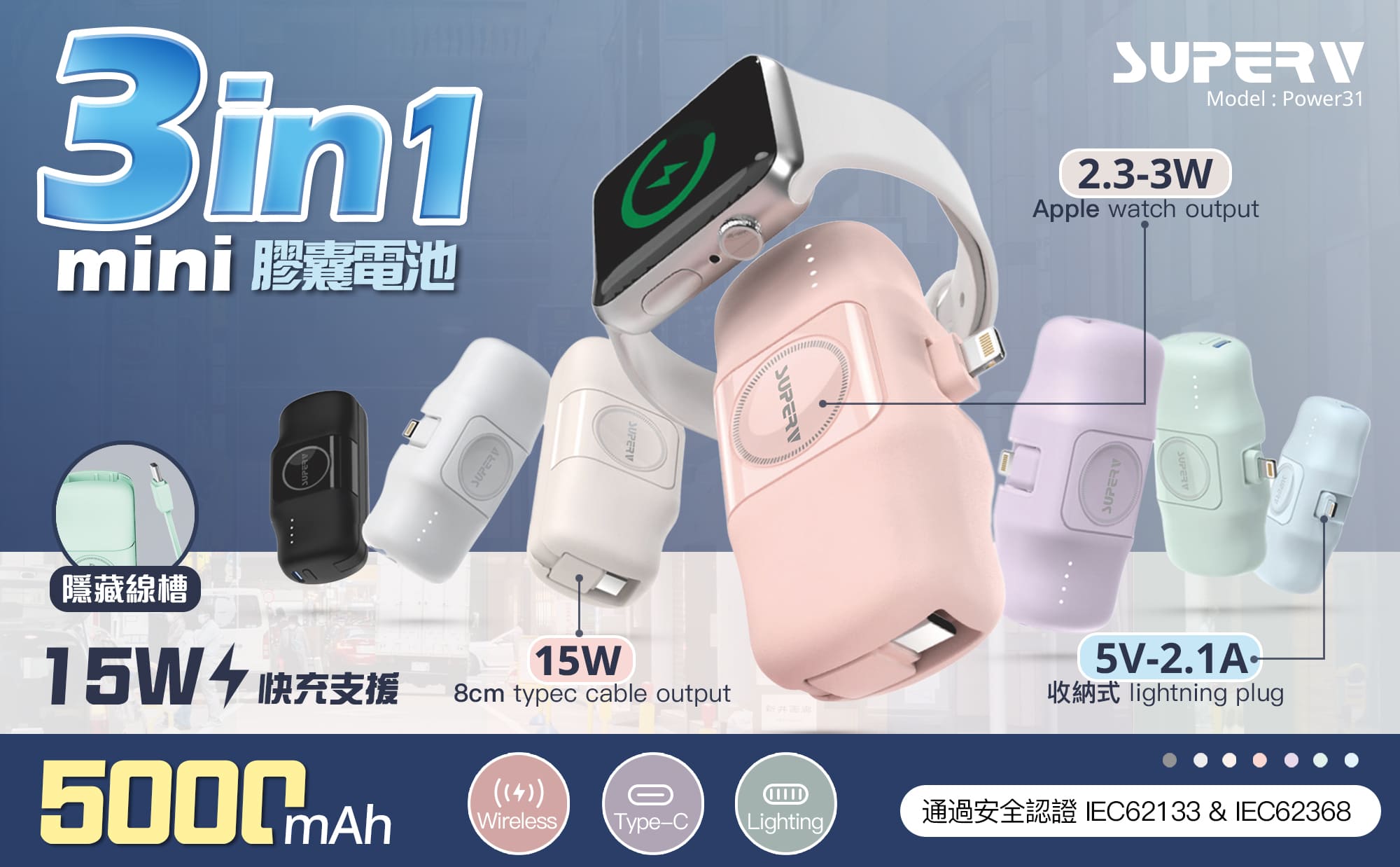 SUPERV 三合一膠囊充電寶